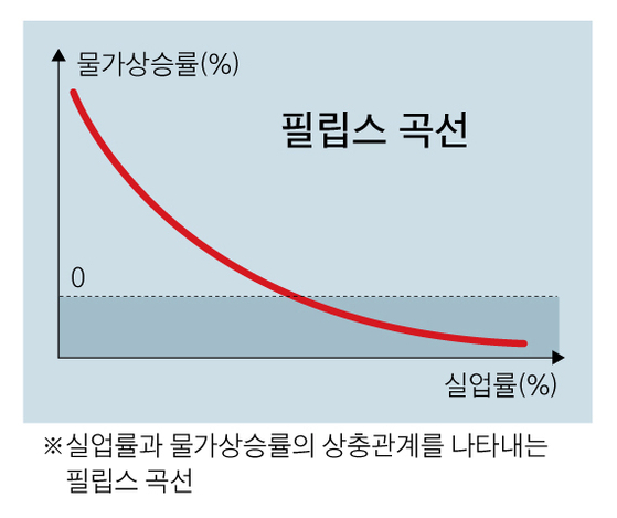 영국의 경제학자 윌리엄 필립스(William Phillips)는 1958년에 명목임금상승률과 실업률 간의 역의 관계가 있음을 발표한다. 즉, 실업률이 낮은 해에는 임금상승률이 높고 실업률이 높은 해에는 임금상승률이 낮다는 것이다. 경제가 침체되면 실업률이 높아지지만 경제가 회복하기 시작하면 총수요가 증가하면서 고용도 함께 증가한다.