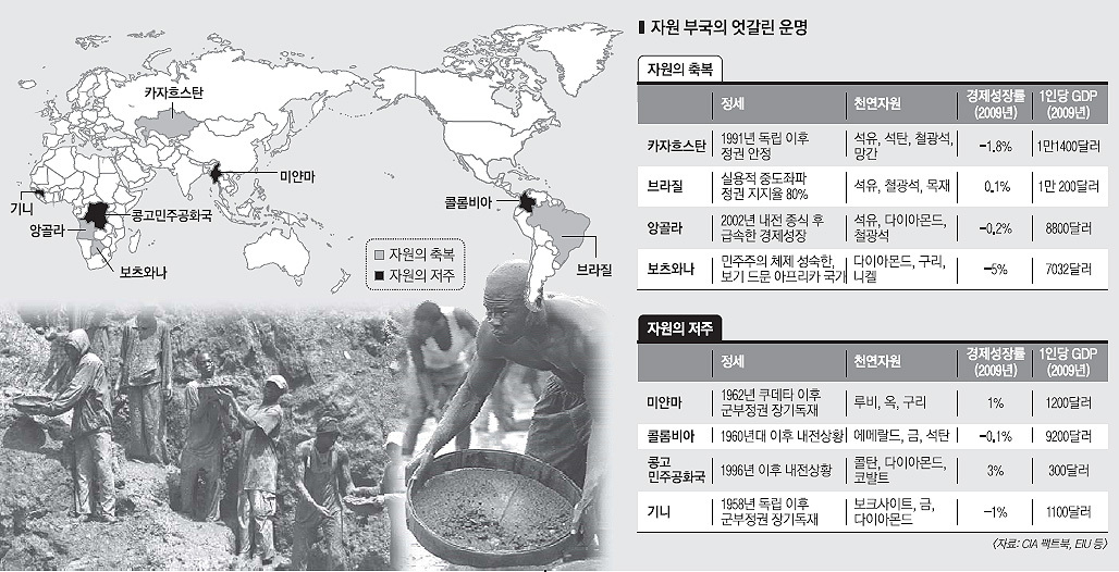 브라질·카자흐 ‘성장 발판’… 미얀마·콩고共엔 ‘불행의 씨앗’, 기름 한 방울 나지 않는 한국에선 풍부한 천연자원을 가진 나라를 부러워하는 사람이 적지 않다. 하지만 풍부한 자원이 자