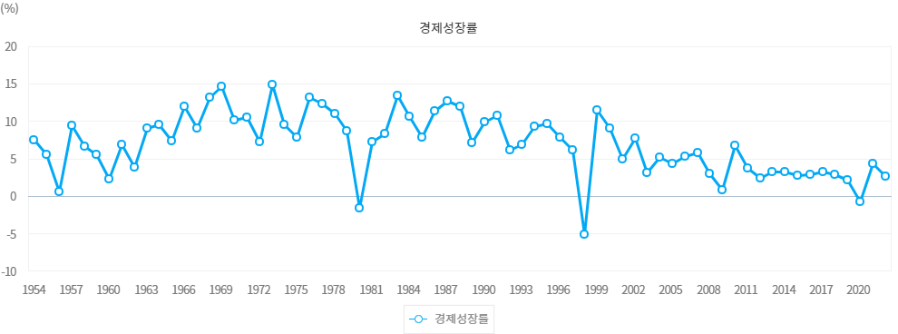 대한민국 1954~2022 경제성장률 차트, 이미지 출처 : 국가지표체계, https://www.index.go.kr/unify/idx-info.do?idxCd=4201#