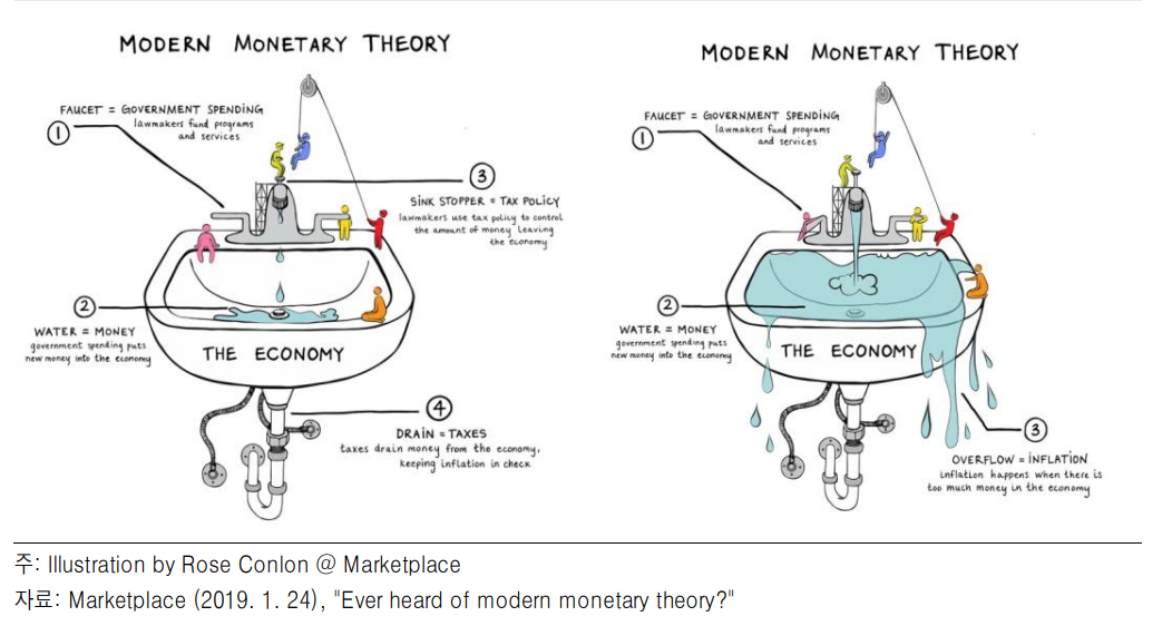 <출처 : 메리츠증권, 현대화폐이론(MMT), 개요, 쟁점 그리고 견해 http://home.imeritz.com/include/resource/research/WorkFlow/20190519180939918K_02.pdf >