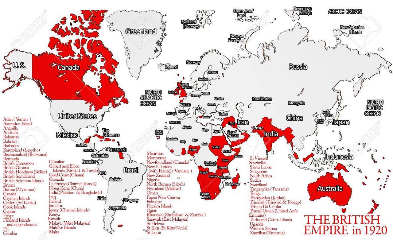 대영제국의 별명은 '해가 지지 않는 나라'이다. 해가 뜨고 지는 현상은 지구의 공전 현상으로 인하여 발생한다. 이는 대영제국의 식민지가 전세계에 분포되어 있음을 의미한다. 아래의 세계 지도를 보자. 대영제국의 식민지는 북미, 중앙아메리카, 유럽 본토, 아프리카, 인도, 동남아시아, 오세아니아 대륙에 뻗쳐있었다. 이 거대한 제국을 건설하고 식민지를 다스리는 방법은 바로 분할 점령(Divide and Conquer)이었다.