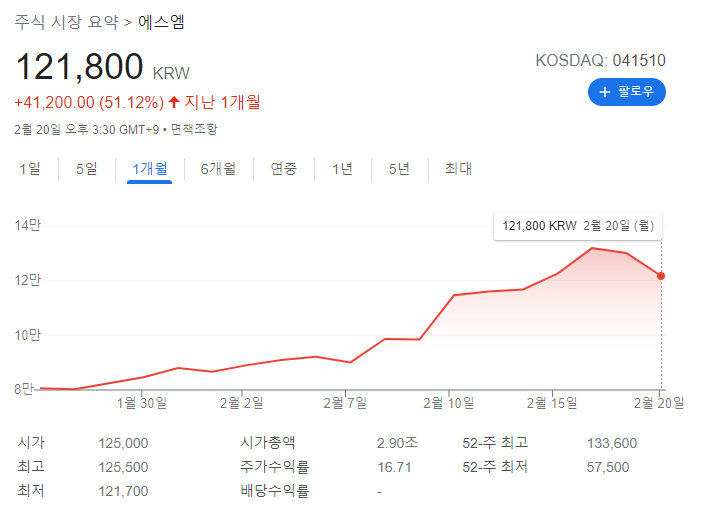 이수만과 하이브는 이수만의 SM엔터테인먼트 경영권 방어를 위하여 이수만이 보유하고 있는 SM엔터테인먼트 주식을 전량 하이브가 취득하게 하였으며 소액주주들이 보유한 SM엔터테인먼트 지분 공개매수하는 전략을 취하였다. 그 결과, 하이브는 이수만의 지분 14.8%를 4228억원에 인수 계약을 체결하였다. 그러나 SM엔터테인먼트 주가가 펌핑하기 시작하였다. 따라서, 하이브가 SM엔터테인먼트 지분 공개 매수 전략에 차질이 발생하게 되었다. 과연 이수만과 하이브는 경영권을 지켜낼 수 있을까? 필자는 어렵다고 본다. 하이브의 자본력이 얼마나 되는지는 예상할 수 없으나 주가가 뛰어 올라가는 상황에서 추가 지분 매수를 진행하는 것은 쉽지 않아 보인다.