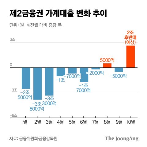 2금융권 대출, 3조원 가까이 급증…절반 이상이 '서민 급전' | 중앙일보