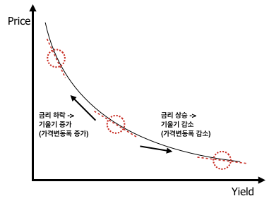 <출처 : 파이낸스 포레스트, 채권의 기초, 채권의 볼록성, https://financialforest.com/2016/09/02/%EC%B1%84%EA%B6%8C%EC%9D%98-%EA%B8%B0%EC%B4%88-%EC%B1%84%EA%B6%8C%EC%9D%98-%EB%B3%BC%EB%A1%9D%EC%84%B1-convexity/ >